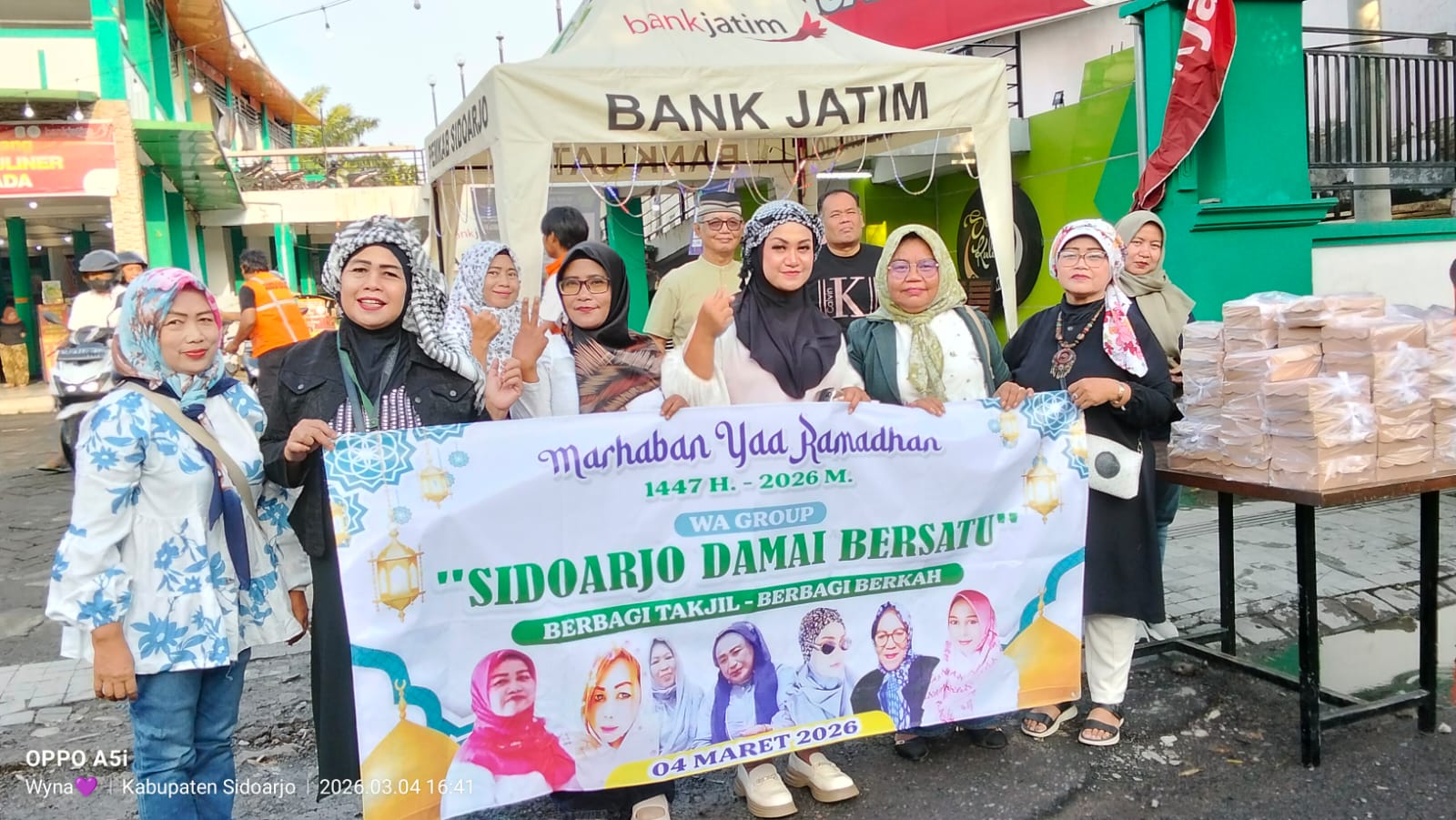 Sidoarjo – Persatuan Perempuan Sidoarjo yang tergabung dalam group medsos Sidoarjo Damai Bersatu berbagi takjil dan suarakan perdamaian untuk dua pimpinan di Sidoarjo yang berlangsung di depan Sentral Kuliner Gajah Mada, Rabu, 04/03/2026.