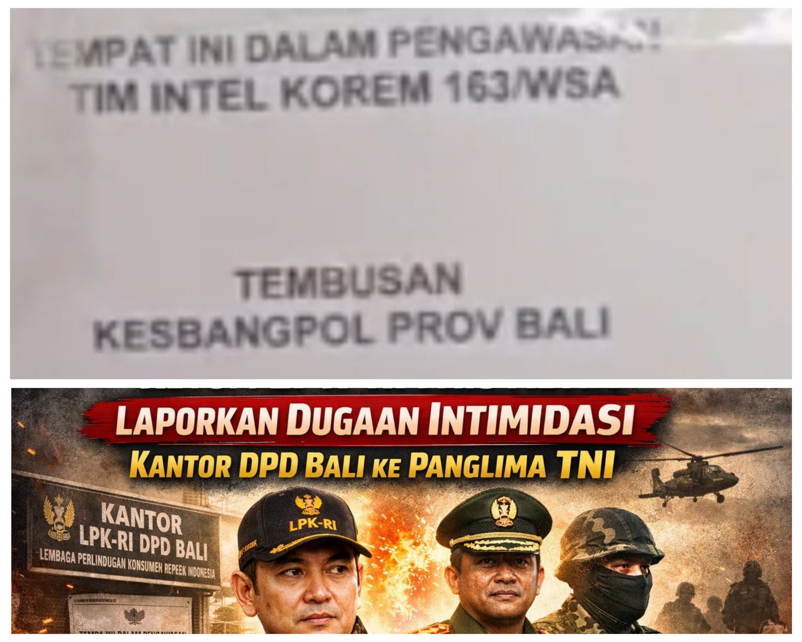 Pada malam hari setelah laporan dibuat, sekitar 20 orang mendatangi kantor LPK-RI DPD Bali untuk mencari individu yang membuat laporan dan meminta laporan dicabut. Salah satu di antara mereka, Putu Yuli, mengaku berasal dari Intel Korem. Kedatangan mereka menimbulkan suasana tidak kondusif, disaksikan masyarakat sekitar, dan menjadi bentuk intervensi langsung terhadap kantor LPK-RI DPD Bali.